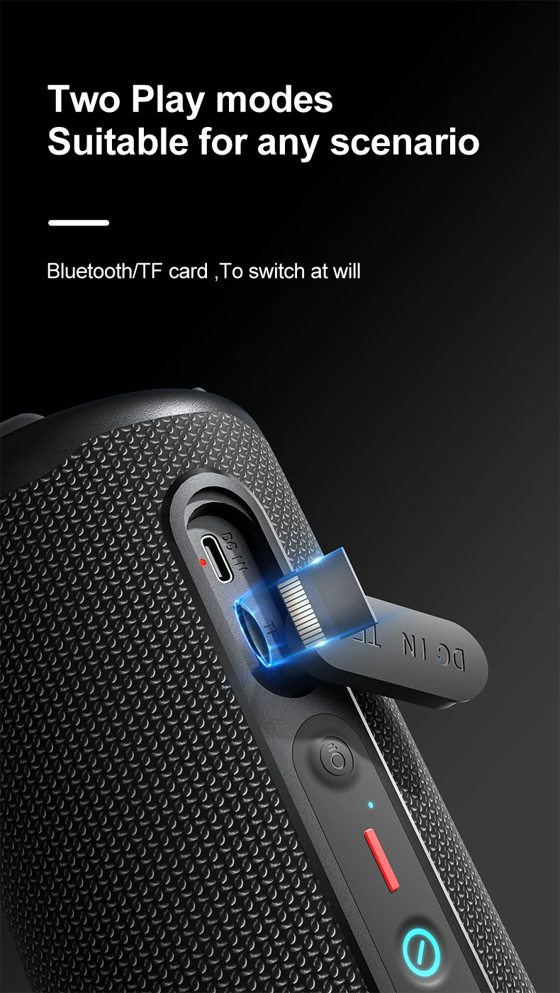 Power source: Li Battery(2000mAh) Output power: 2*8W Wireless: Bluetooth 5.4 Audio Input: Wireless + TF Working distance: Up to 20M Working time: Up to 5 hours Speaker unit: 2* 52mm